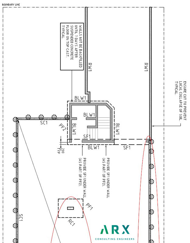 This development consisted of ten architecturally designed dwellings which were supported on a suspended concrete floor with a basement garage structure.  The basement was designed to utilise a bored pier and shotcrete infill system to allow the structure to be built in a close proximity to the boundary without having any influence on neighbouring structures.  Concrete columns were utilised in order to achieve an open plan basement which would ease congestion and allow for the free flow of traffic in and out of the carpark.  The use of innovative design software allowed the size of these columns to be minimised and thus increase the usable area of the basement.