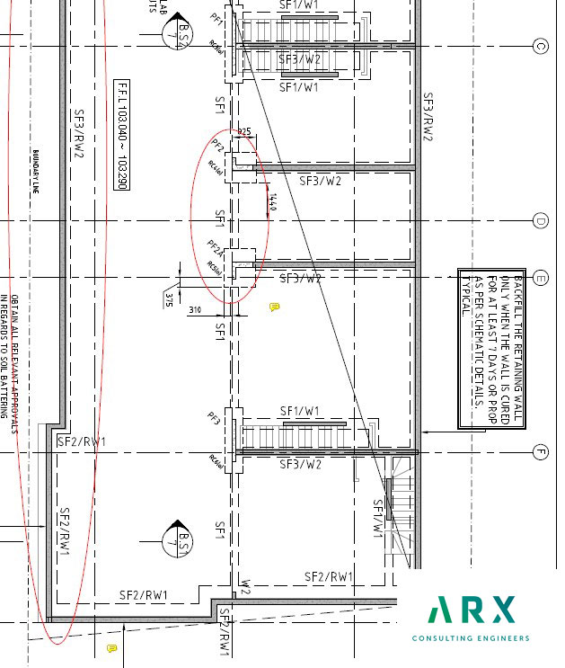 This medium density development consisted of five dwellings, with a basement garage structure and two floors above. The basement design utilised soil mechanics and an innovative shoring system to accommodate a cost effective block retaining wall design without compromising the integrity of neighbouring structures. In order to increase the usability and functionality of the structure, this complex design required a cantilevered concrete slab to support retaining walls on the boundary. This project was customised to suit both the client’s needs and used innovative design software to allow for a simpler construction method.
